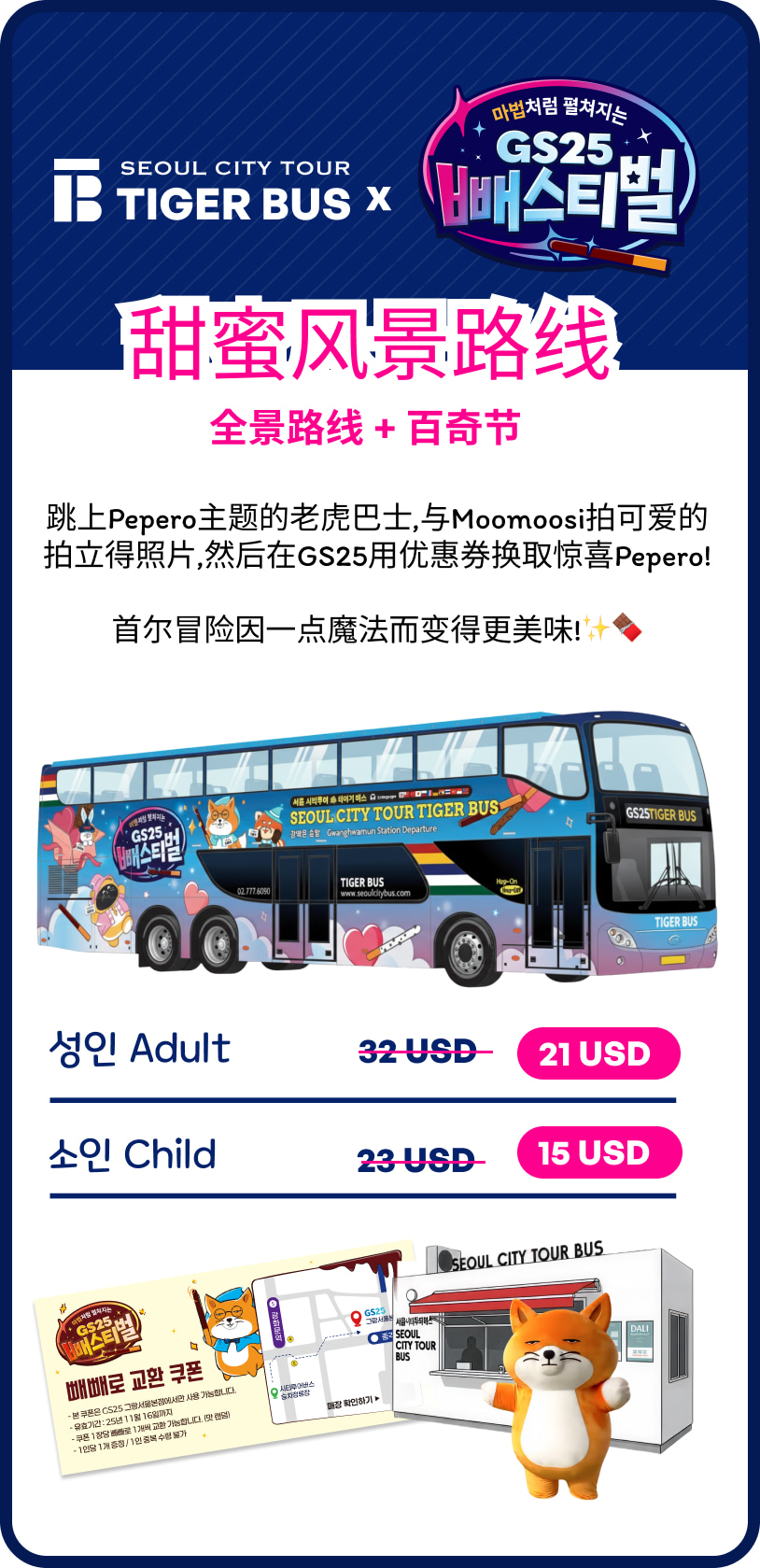 乘坐比比乐主题巴士尽情欣赏城市与汉江的全景,